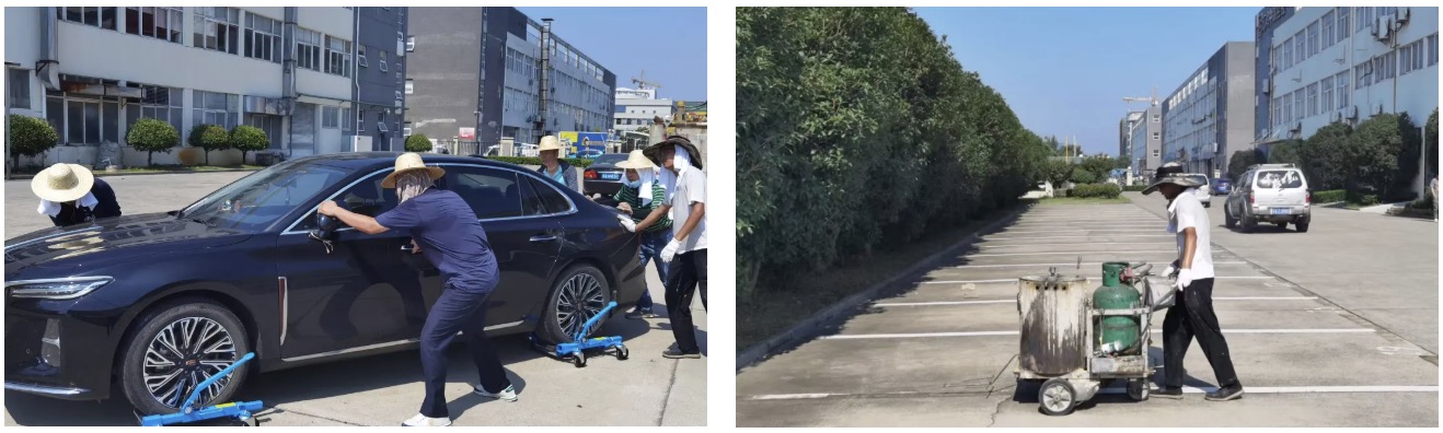 7月5日至6日,南京持續(xù)籠罩在高溫炙烤之下,地表溫度突破60℃。為最大限度降低施工對(duì)園區(qū)企業(yè)日常運(yùn)營(yíng)的影響,柏溢公司特意選擇周末時(shí)段開(kāi)展錯(cuò)峰施工。在黨員骨干帶領(lǐng)下,四人攻堅(jiān)團(tuán)隊(duì)連續(xù)兩天從清晨七點(diǎn)奮戰(zhàn)至夜晚九點(diǎn):他們科學(xué)劃分卸貨區(qū)、禁停區(qū),功能分區(qū)更清晰;精準(zhǔn)施劃車(chē)位線,泊車(chē)指引更規(guī)范;規(guī)范道路與行人標(biāo)識(shí),通行秩序更井然;特意增設(shè)殘疾人專(zhuān)用車(chē)位,人文關(guān)懷更暖心。高溫下,汗水一遍遍浸透他們的工裝,又被毒辣的日頭迅速蒸干,在衣料上凝結(jié)出層層鹽霜。即便如此,團(tuán)隊(duì)依舊專(zhuān)注投入、毫不松懈,用執(zhí)著與堅(jiān)守展現(xiàn)國(guó)企員工的實(shí)干精神。