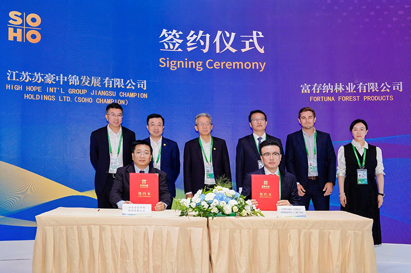 11月6日,在第八屆中國(guó)國(guó)際進(jìn)口博覽會(huì)蘇豪控股集團(tuán)展位上,江蘇蘇豪中錦發(fā)展有限公司與新西蘭知名木材供應(yīng)商富存納林業(yè)有限公司舉行簽約儀式,雙方簽署總量200萬(wàn)立方米、金額2.28億美元的輻射松原木采購(gòu)意向合同。中錦公司總經(jīng)理、黨委副書(shū)記董旭與富存納林業(yè)有限公司代表孫誠(chéng)一同簽署協(xié)議。