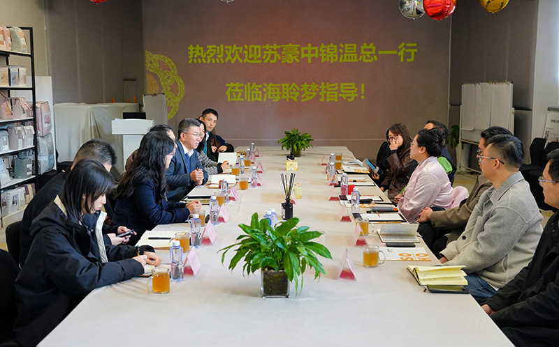 溫成剛介紹了中錦公司的發(fā)展情況及合作愿景。他表示,蘇豪控股集團(tuán)正加快創(chuàng)建世界一流企業(yè),努力向世界500強(qiáng)目標(biāo)邁進(jìn)。中錦公司作為集團(tuán)核心成員企業(yè),正依托控股集團(tuán)強(qiáng)大的產(chǎn)業(yè)資源和渠道優(yōu)勢,穩(wěn)步推進(jìn)多元化發(fā)展戰(zhàn)略,已形成服裝家紡、農(nóng)林產(chǎn)品、機(jī)械設(shè)備、油氣化工四大重點(diǎn)業(yè)務(wù)板塊。其中,家用紡織品出口業(yè)務(wù)深耕行業(yè)30余年,憑借國企背景與行業(yè)積淀,在綠色認(rèn)證、研發(fā)創(chuàng)新及國內(nèi)外市場布局等方面構(gòu)建了顯著優(yōu)勢。他指出,海聆夢公司不僅是家紡行業(yè)智能化、綠色化發(fā)展的標(biāo)桿,更是新質(zhì)生產(chǎn)力的生動實(shí)踐。中錦與海聆夢結(jié)緣已久,希望雙方未來能在國內(nèi)外市場拓展、供應(yīng)鏈協(xié)同等領(lǐng)域打開合作新局面。
