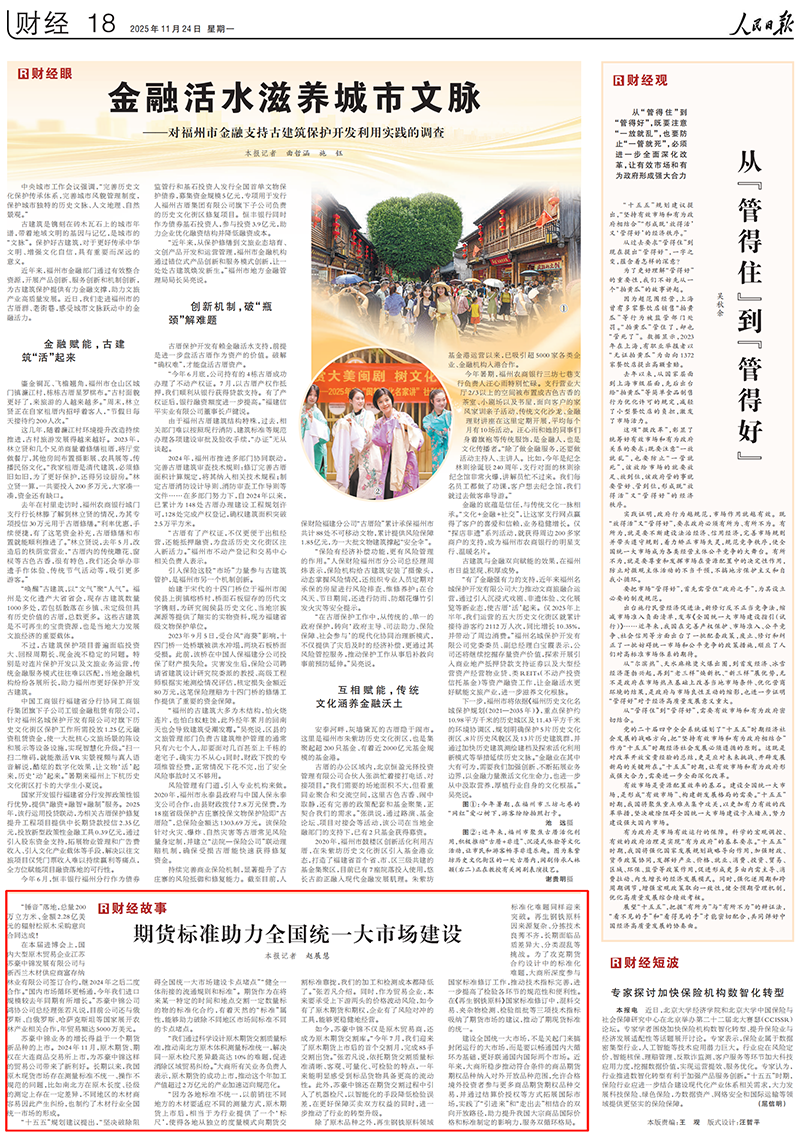 11月24日《人民日報(bào)》第18版專題報(bào)道了江蘇蘇豪中錦發(fā)展有限公司通過參與原木期貨交易,有效降低經(jīng)營成本、規(guī)避市場風(fēng)險,并積極推動行業(yè)標(biāo)準(zhǔn)統(tǒng)一的實(shí)踐。報(bào)道中,蘇豪中錦公司鴻協(xié)公司總經(jīng)理張若凡接受采訪,并表示原木期貨上市后,為行業(yè)提供了一把“標(biāo)尺”,統(tǒng)一了此前南北差異顯著的測量標(biāo)準(zhǔn),使企業(yè)加工和檢測成本顯著降低。