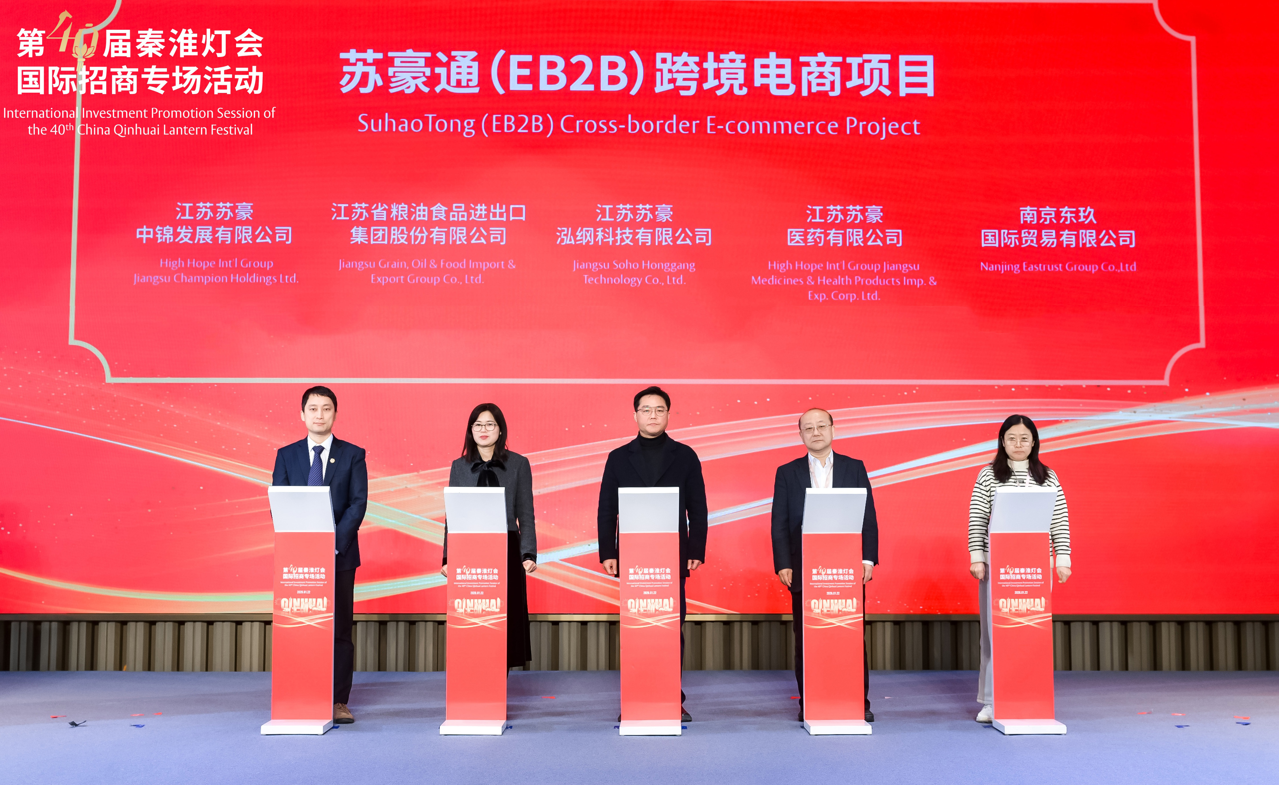 以燈為媒,以商促融。1月22日上午,第40屆秦淮燈會(huì)國(guó)際招商專場(chǎng)活動(dòng)在南部新城麗笙酒店隆重舉行。南京市、秦淮區(qū)及南部新城管委會(huì)相關(guān)領(lǐng)導(dǎo)、多國(guó)使領(lǐng)館及友城代表、海外秦淮燈會(huì)合作伙伴及眾多企業(yè)代表齊聚一堂,共同展望合作未來。蘇豪中錦公司作為重點(diǎn)外貿(mào)企業(yè)受邀參會(huì)并參展,在“跨境電商合作項(xiàng)目”簽約環(huán)節(jié)上臺(tái)簽署重要協(xié)議。