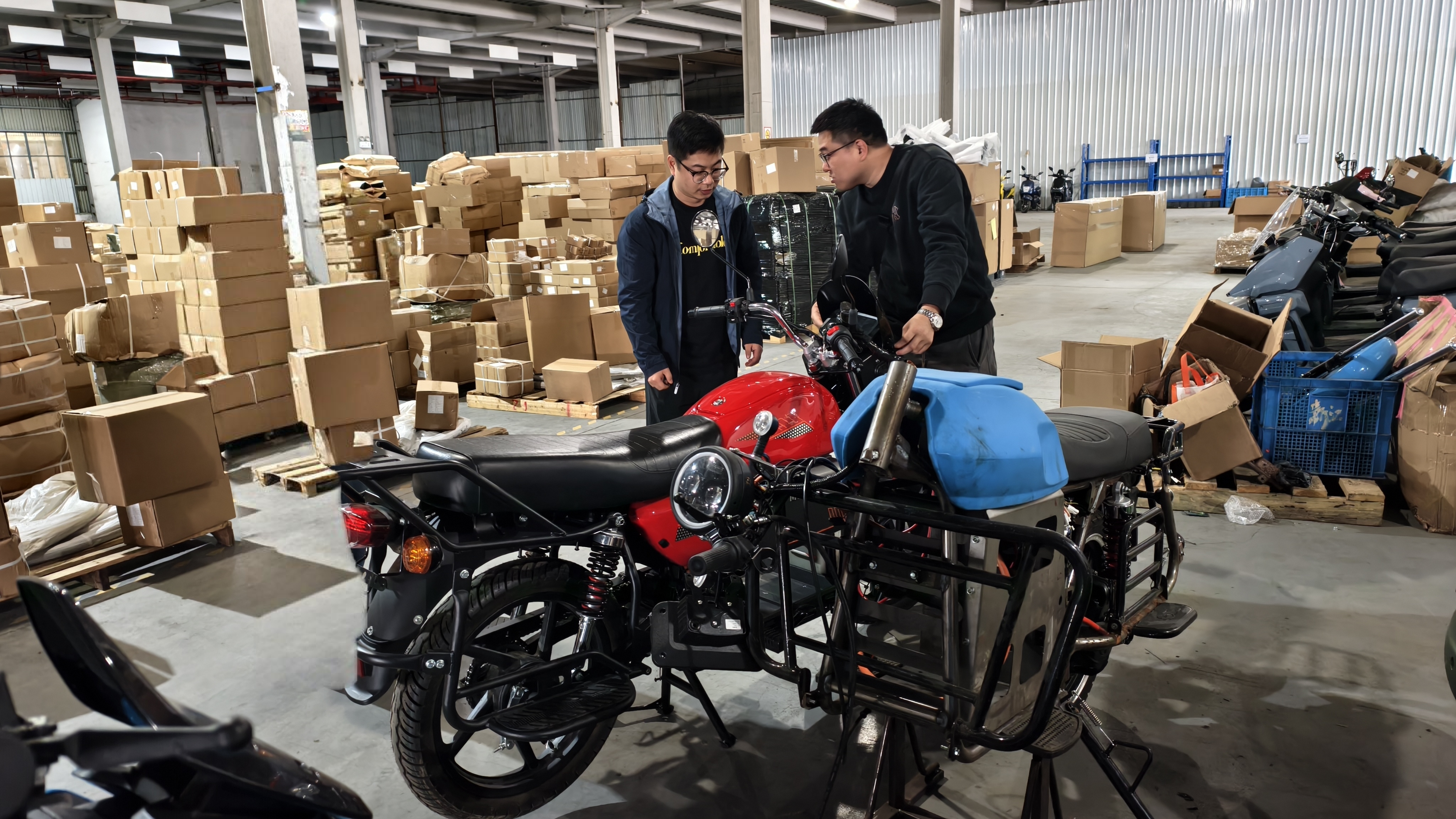 此次參展,中錦公司將重點(diǎn)展示電動(dòng)自行車(chē)、電動(dòng)摩托車(chē)及相關(guān)換電系統(tǒng)。在工廠,團(tuán)隊(duì)系統(tǒng)梳理了主力展品的技術(shù)參數(shù)、適用市場(chǎng)及核心賣(mài)點(diǎn),涵蓋城市通勤電動(dòng)自行車(chē)、外賣(mài)用途電動(dòng)摩托車(chē)、“油改電”三輪車(chē)零部件套件,以及配套的換電柜、快充樁和太陽(yáng)能充電系統(tǒng)。針對(duì)不同目標(biāo)市場(chǎng),產(chǎn)品配置各有側(cè)重。歐洲市場(chǎng)主推符合歐標(biāo)的助力自行車(chē),突出城市通勤與環(huán)保理念;東南亞及非洲市場(chǎng)則主推越野性能強(qiáng)的電動(dòng)摩托車(chē),以應(yīng)對(duì)電力不足及顛簸路況。同時(shí)配套提供換電柜及“油改電”系統(tǒng),形成“整車(chē)+換電柜+太陽(yáng)能充電系統(tǒng)”的全套新能源解決方案。